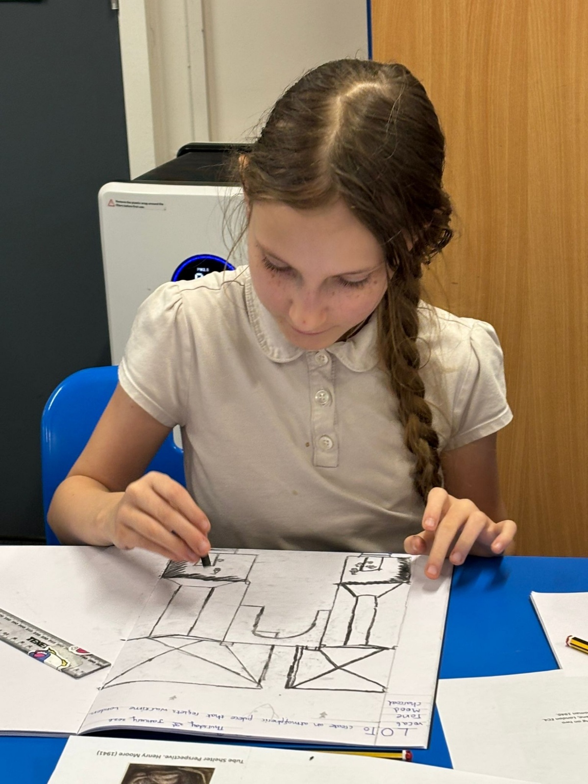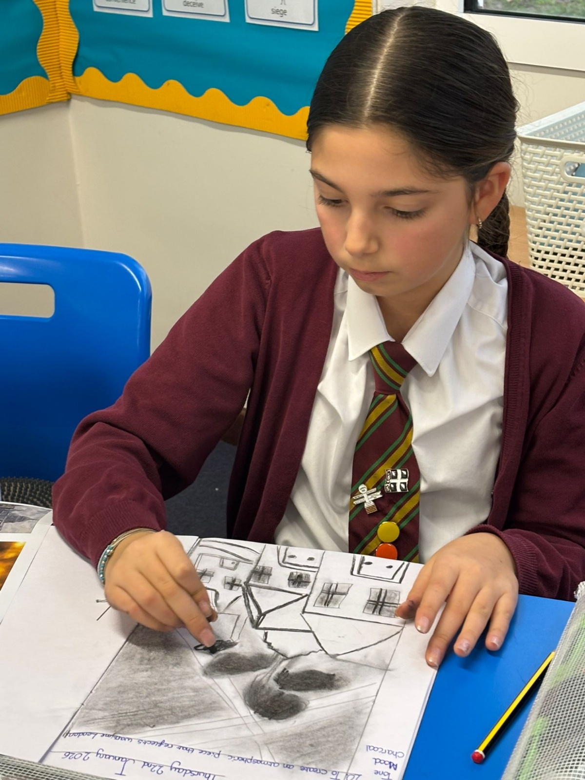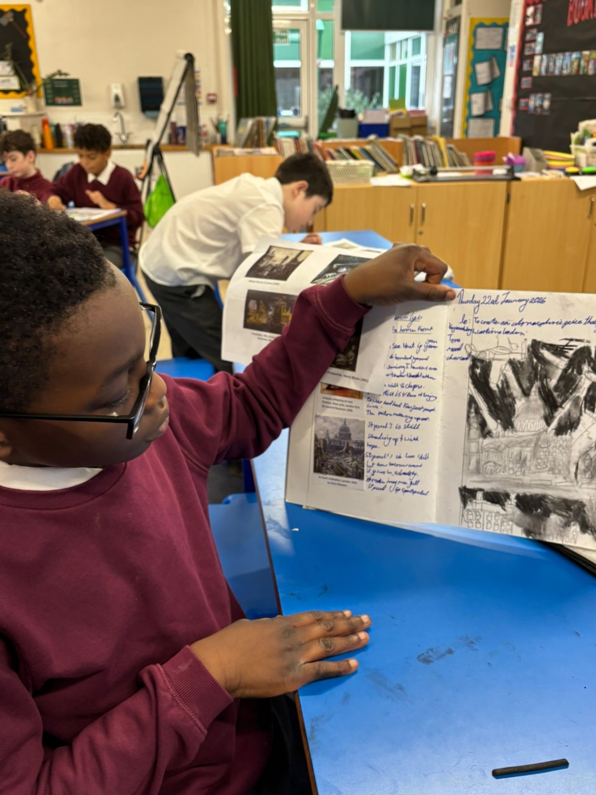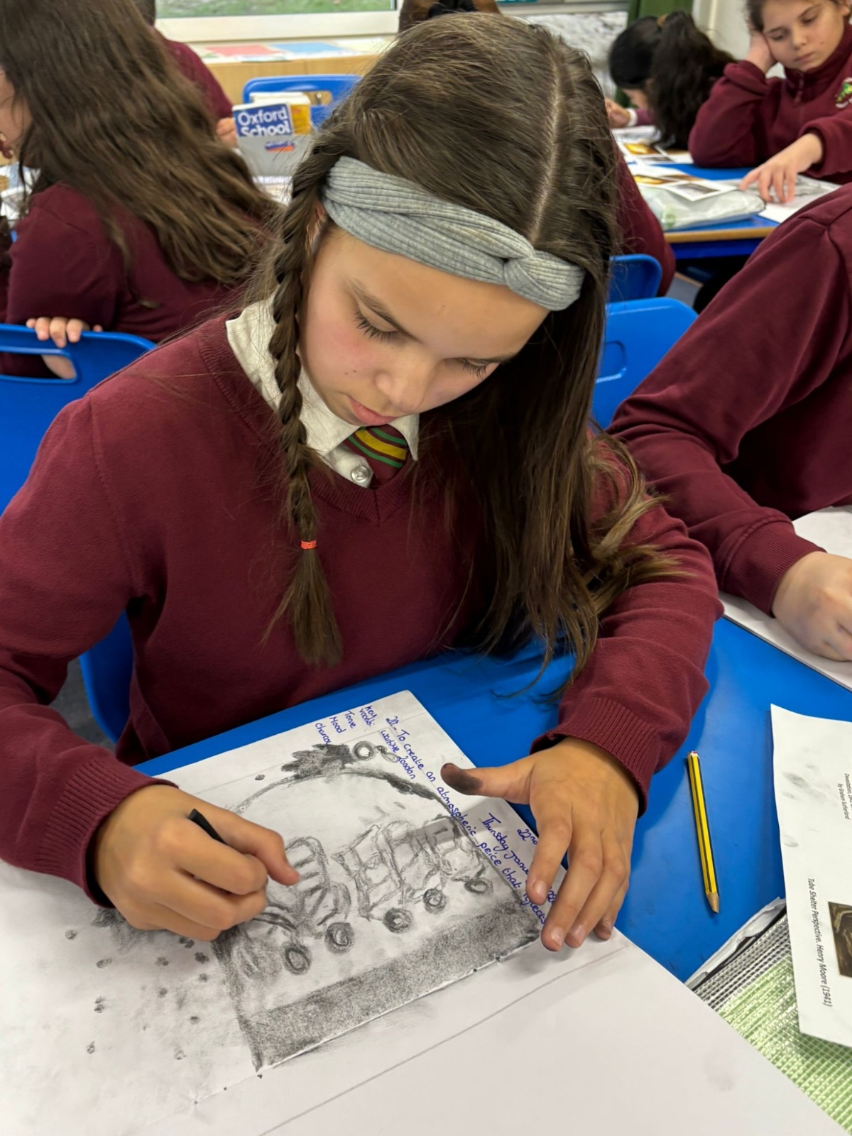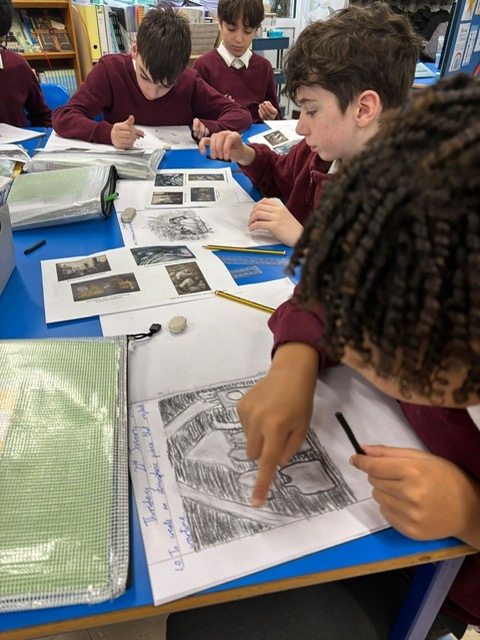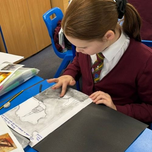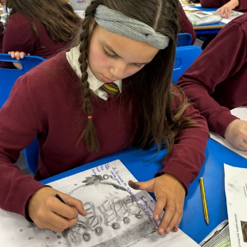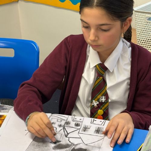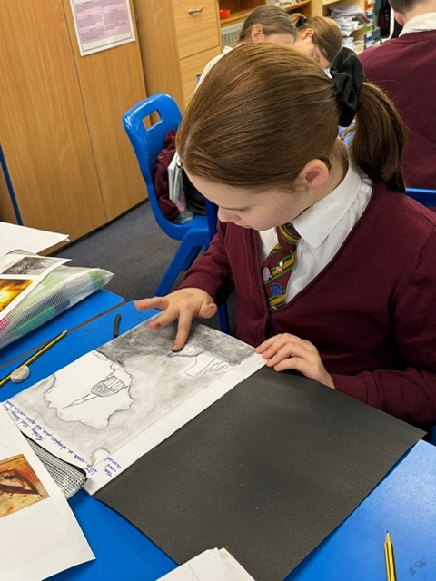 Year Six created charcoal drawings about WW2 to help portray what life was like for people living through the war, have a look at some of their examples!